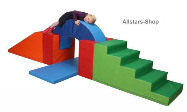 Dieser Halbkreis gehört zu den beliebten Soft-Bausteinen für Kindergärten, großen Spielräumen jeglicher Art und Spielräumen z.B. in Einkaufsmärkten.