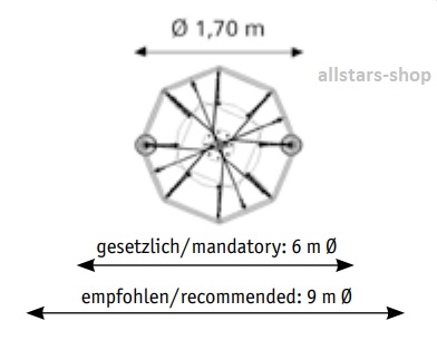 - Platzbedarf inkl. Sicherheitsbereich: gesetzlich vorgeschrieben: Ø 6 m