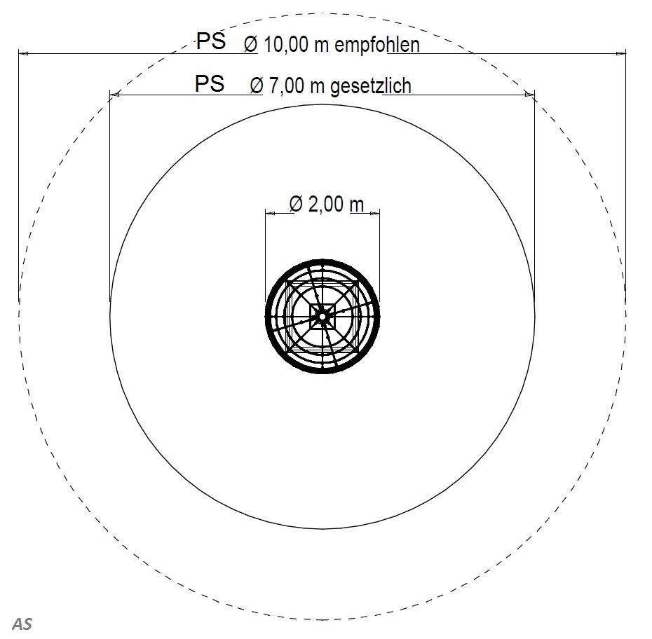- Platzbedarf inkl. Sicherheitsbereich: gesetzlich vorgeschrieben Ø 7 m