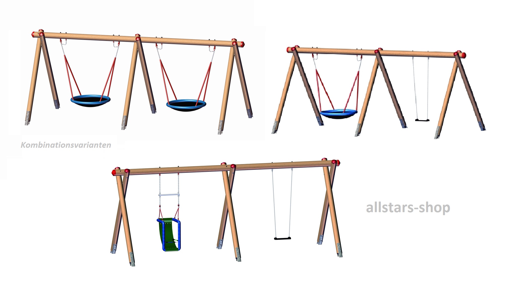 Betonbedarf 4,00 m³Für die Einhängeschaukel sind viele Kombinationen möglich (nicht in diesem Angebot enthalten):