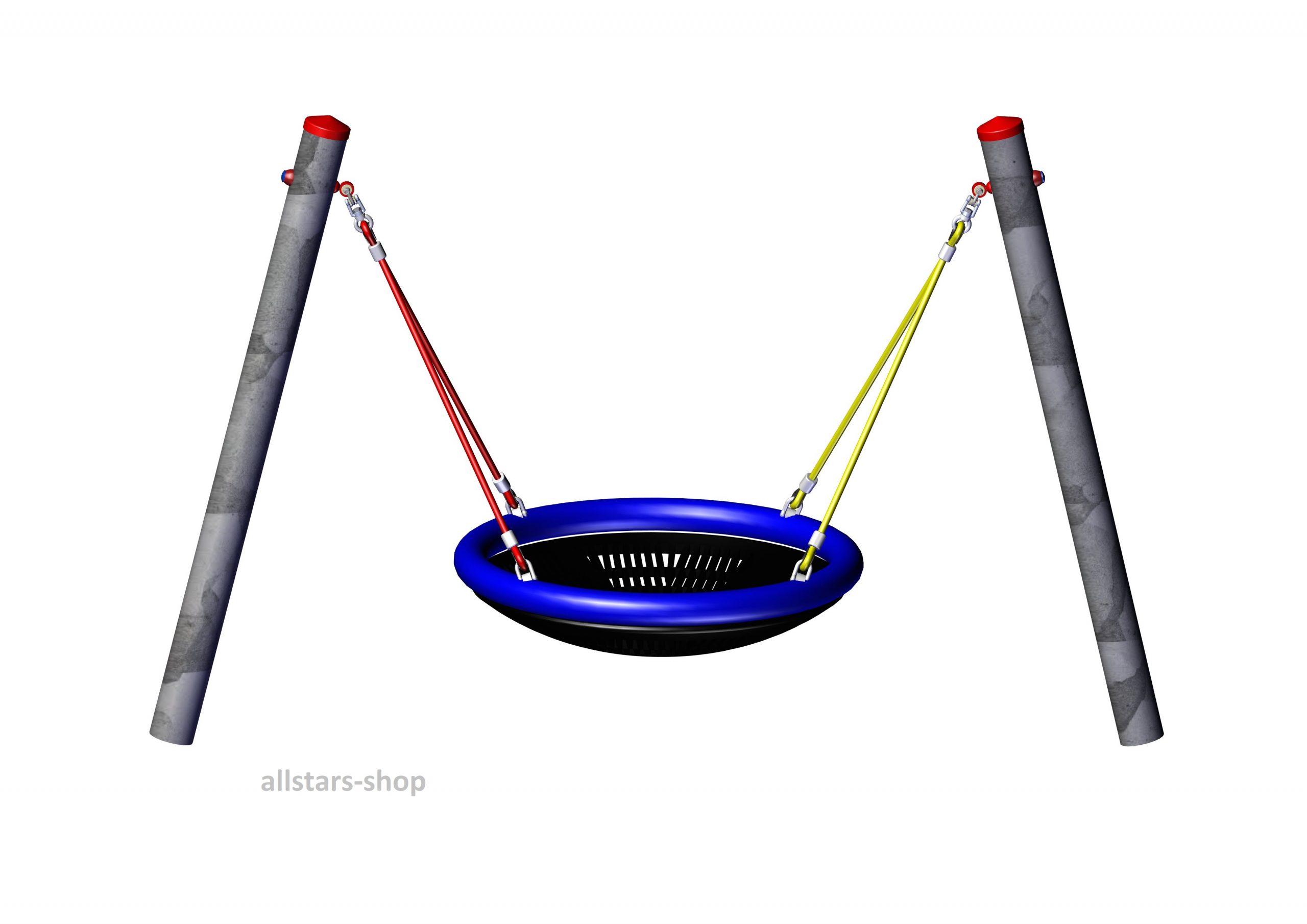 Diese Standpfosten mit Aufhängelager sind die perfekte Basis für eine Mini-Nestschaukel auf einem öffentlichen Spielplatz.