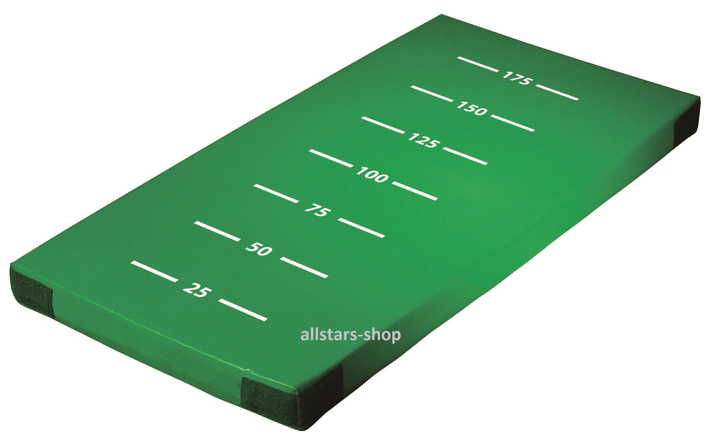 Wer kann am weitesten springen? Und wie weit ist das Kind gesprungen? Hier die Antwort. Auf der Turnmatte ist eine Größenskala aufgebracht. So kann diese Turnmatte super als Wettkampfmatte oder Spielmatte in vielen anderen Bereichen verwendet werden. Und dazu ist es noch sicher. Denn der Aufdruck ist auf einer Turnmatte. So gibt es keine Verletzungsgefahr bei Stürzen.