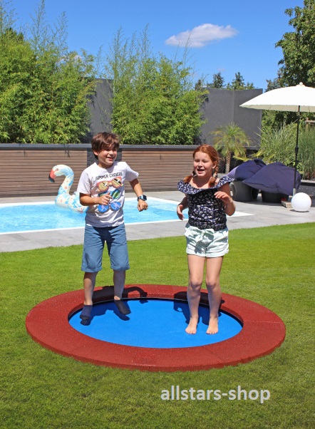 Das runde Hally-Gally-Trampolin besticht nicht nur durch sein tolles Design, sondern vor allem durch seine hervorragende Qualität, und wird jedem Kind ein Strahlen ins Gesicht zaubern. Es ist durch seine besondere Kunststoffmatte zum Barfußspringen geeignet. Die Kleinen können hier spielerisch ihre Sportlich- und Geschicklichkeit schulen. Das Trampolin mit gewebearmierter Kunststoffmatte ist umrandet von einer Reihe Fallschutzmatten, die dafür sorgt, dass auch beim wildesten Herumhopsen nichts passieren kann. Die Sprungmatte kann von oben ausgehängt werden, so dass eine einfache Reinigung möglich ist. Dank der ausgefeilten Konstruktion und der robusten Ausführung erfreut dieses Spielgerät sie viele Jahre. Es gehört zu den stabilsten Outdoor-Trampolinen, die es zur Zeit am Markt gibt und ist nahezu unverwüstlich und extrem witterungsbeständig.